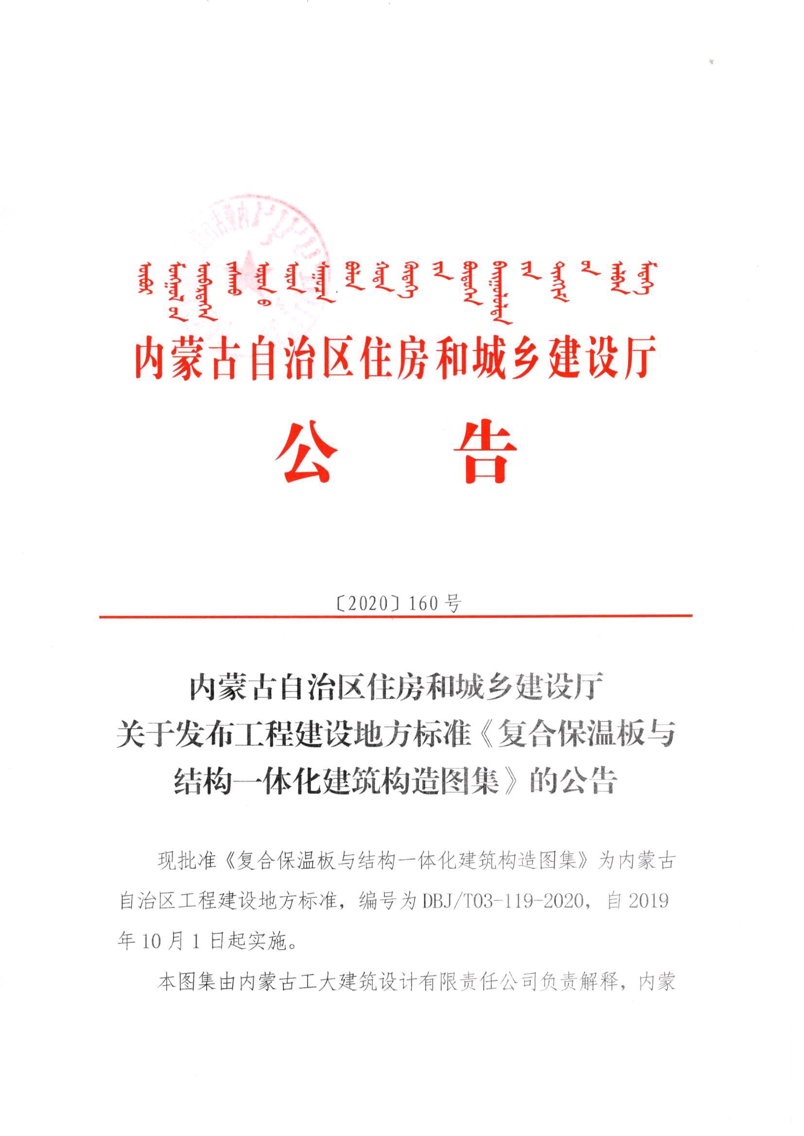 內(nèi)蒙古自治區(qū)住房和城鄉(xiāng)建設(shè)廳關(guān)于發(fā)布工程建設(shè)地方標(biāo)準(zhǔn)《復(fù)合保溫板與結(jié)構(gòu)一體化建筑構(gòu)造圖集》的公告